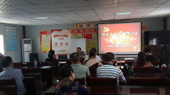 根據(jù)中心黨委關(guān)于2017年離退休黨員社區(qū)化管理的要求,第一黨總支積極與所在轄區(qū)的龍首原社區(qū)進(jìn)行溝通,積極搭建“社企共建”黨員活動(dòng)平臺(tái),讓離退休黨員有效的參與社區(qū)黨員活動(dòng)。在宣講會(huì)開始前,首先由社區(qū)第一書記羅健同志帶領(lǐng)全體黨員面向黨旗重溫入黨誓詞,宣誓結(jié)束后向黨員傳達(dá)了省十三次黨代會(huì)精神,最后社區(qū)黨支部書記張慧就此次聯(lián)合黨建活動(dòng)進(jìn)行點(diǎn)評(píng)。