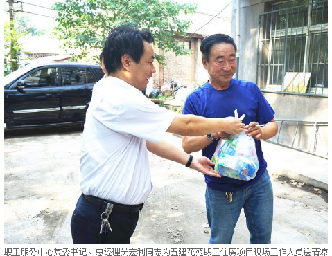 進入7月以來,我市連續(xù)發(fā)布高溫紅色預(yù)警。為確保中心重點工作職工住房項目的正常推進,保障項目一線人員的身心健康,近日服務(wù)中心組織開展了為一線工作人員“送清涼”活動,在三伏盛夏,為一線員工送去一絲清涼,將組織的關(guān)懷送到一線職工手中。