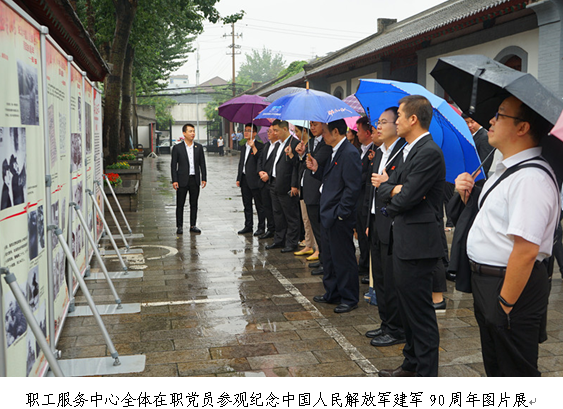 8月29日,細(xì)雨連綿中,職工服務(wù)中心全體在職黨員、預(yù)備黨員和入黨積極分子來到八路軍西安辦事處紀(jì)念館,參觀了由西安市委舉辦的“鐵血之師—紀(jì)念中國人民解放軍建軍90周年大型圖片展”。
