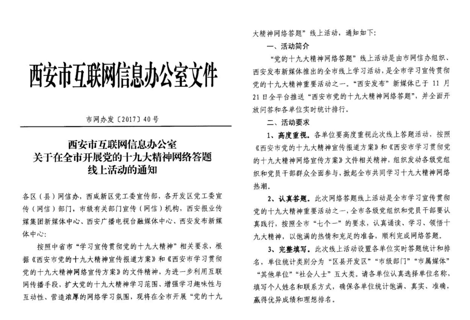 首頁(yè) > 新聞動(dòng)態(tài) > 中心動(dòng)態(tài) 西安市互聯(lián)網(wǎng)信息辦公室關(guān)于在全市開(kāi)展黨的十九大精神網(wǎng)絡(luò)線上活動(dòng)的通知 2017-11-29 936 評(píng)論 發(fā)表評(píng)論 全部評(píng)論 共{{commentCount}}條 {{i+1}}樓 {{rs.Msg_Sender}}{{rs.Msg_Datetime}} {{rs.Msg_Content}}
