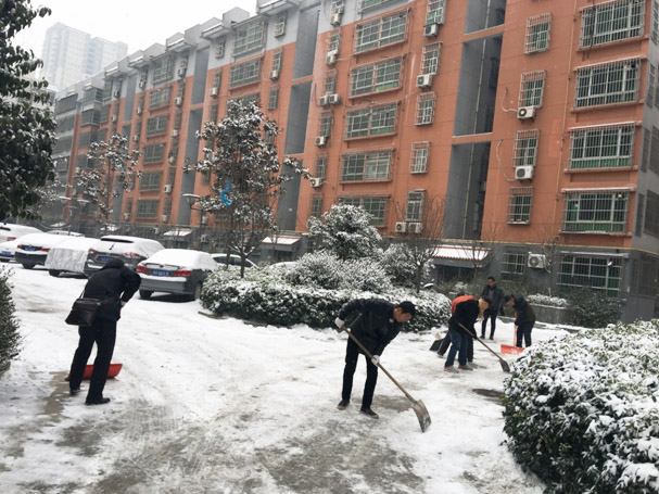 1月25日,2018年的第二場雪光臨了古都西安。潔白的雪花讓中心管理小區(qū)變的銀裝素裹、美景如畫的同時(shí),也給居住在小區(qū)的廣大住戶出行帶來了些許困擾。為了確保小區(qū)住戶安全出行,中心物業(yè)全體工作人員積極響應(yīng)市委、市政府號(hào)召,貫徹執(zhí)行 “以雪為令,邊下邊掃,雪停路凈”的指示精神,按照中心統(tǒng)一安排,資產(chǎn)運(yùn)營部第一時(shí)間向各物業(yè)分中心發(fā)出了關(guān)于加強(qiáng)除冰掃雪,確保小區(qū)安全暢通的通知。各物業(yè)分中心也積極響應(yīng),在小區(qū)全面開展除冰掃雪活動(dòng),戰(zhàn)斗在風(fēng)雪之中,全力保障小區(qū)住戶暢通出行。