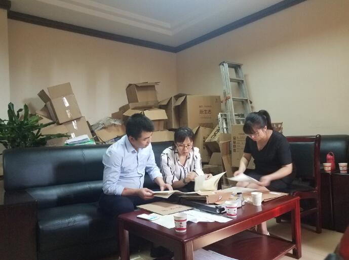 中心黨員領(lǐng)導(dǎo)干部與人事托管服務(wù)部員工一同整理困難職工檔案