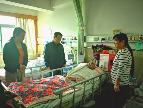 10月17日上午,中心黨委書記、總經理吳宏利一行前往市中心醫(yī)院病房看望慰問原五公司99歲離休干部馮秀栓,吳總親切地握著老人的手,向其子女詳細詢問老人的生活狀況和健康情況,并為老人送上了鮮花和慰問品,祝愿他早日康復,老人的子女對集團公司的關心表示由衷的感謝。