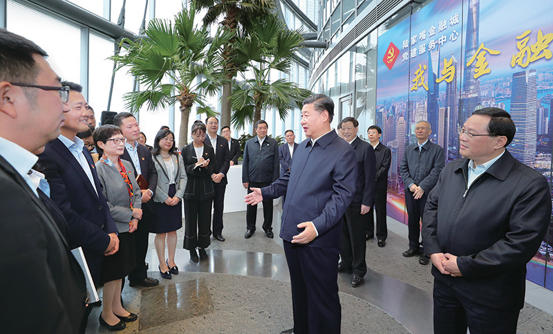 2018年11月6日至7日,中共中央總書記、國(guó)家主席、中央軍委主席???在上??疾?。這是6日上午,???在上海中心大廈22層的陸家嘴金融城黨建服務(wù)中心,同正在聯(lián)合開展主題黨日活動(dòng)的企業(yè)黨員親切交談。