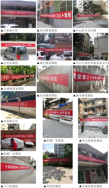 6月中旬,職工服務(wù)中心就通過官方網(wǎng)站和微信平臺(tái)面向廣大代管職工發(fā)起了主題為“禮贊新時(shí)代,共鑄建工夢(mèng)”書法繪畫攝影美文作品征集活動(dòng),為配合開展該活動(dòng),中心制作橫幅標(biāo)語在辦公區(qū)和管轄家屬院共17個(gè)地址進(jìn)行了懸掛,積極營造慶祝氛圍。