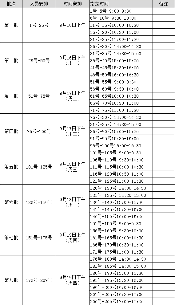 時(shí)間: 2019年9月16日—19日(詳見附表)