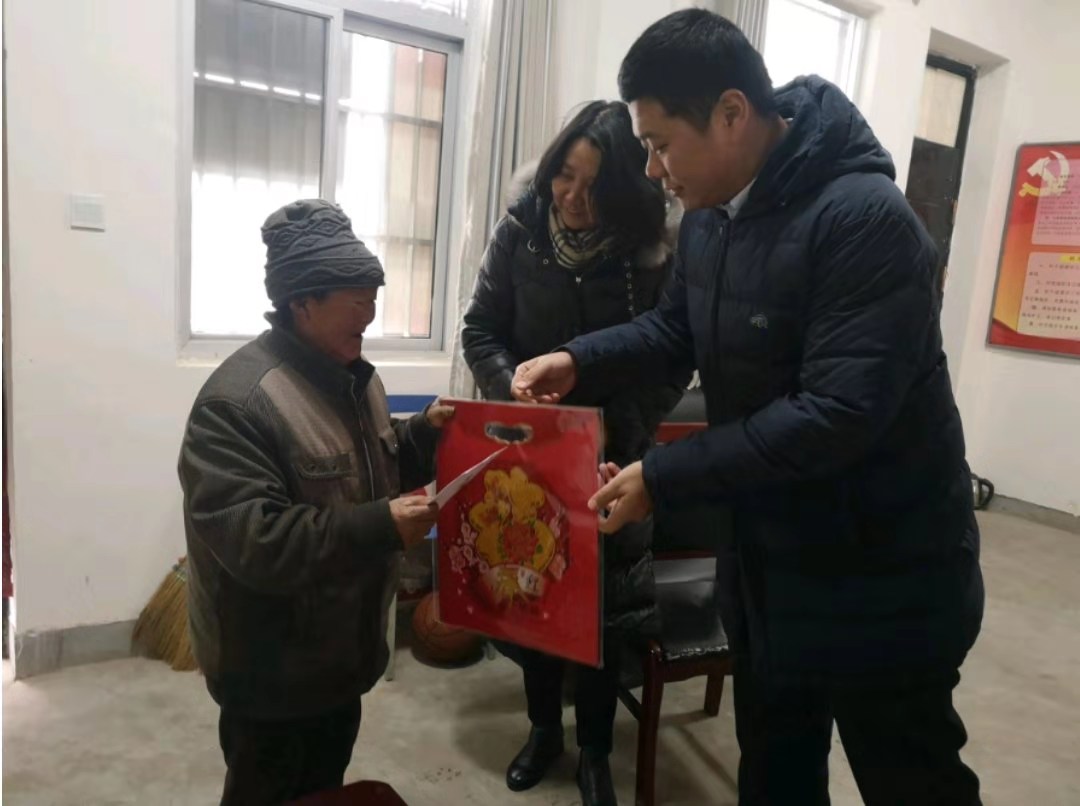 當(dāng)天中午,雪花伴著小雨,氣溫極低,通往牛家口村的道路泥濘濕滑,導(dǎo)致車輛無法通行。但這絲毫沒有影響中心看望慰問扶貧干部和貧困戶的決心,大家中途下車,一路步行來到牛家口村。在村委會(huì)辦公室,中心領(lǐng)導(dǎo)為扶貧干部張景波送去慰問金和春聯(lián)等,并詳細(xì)詢問了扶貧干部們的工作、生活情況,并叮囑他們臨近年關(guān),扶貧工作的任務(wù)更緊更重,要合理安排好工作和生活,同時(shí),中心相關(guān)部門要切實(shí)為駐村扶貧干部做好后勤保障工作,解除他們的后顧之憂,讓他們有更多的時(shí)間和精力投入到脫貧攻堅(jiān)工作中,保證各項(xiàng)工作有序高效推進(jìn)。