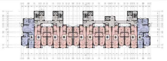 ↑ 1號樓戶型標(biāo)準(zhǔn)層平面