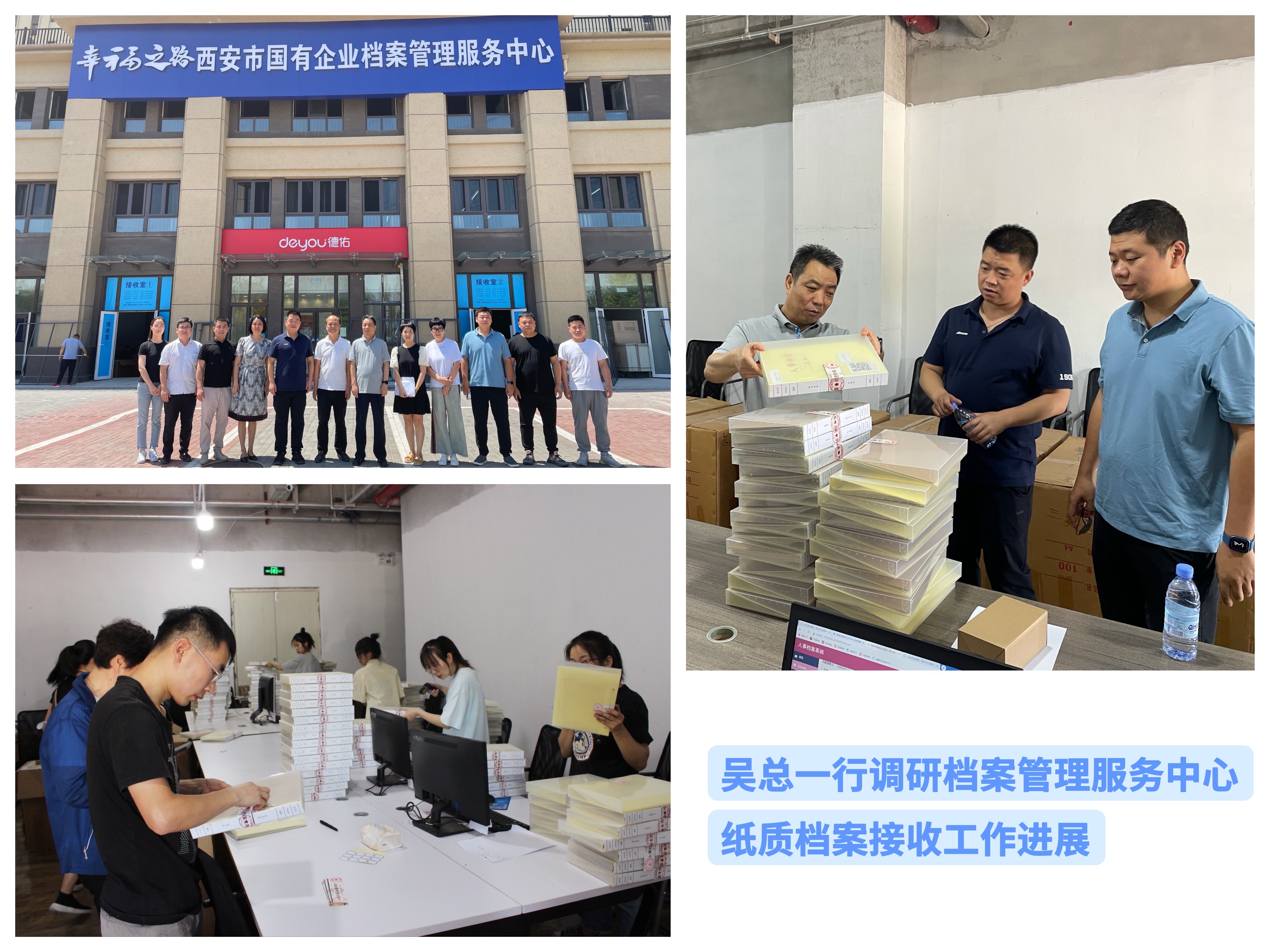 隨后,吳總一行前往“幸福之路”國有企業(yè)檔案管理服務中心調研慰問。在工作人員陪同下,吳總一行參觀了檔案管理服務中心各功能區(qū),向前來辦理檔案移交的企業(yè)了解服務需求,并為現(xiàn)場工作人員發(fā)放了防暑降溫飲品。吳總強調,檔案服務中心及紙質檔案接收是當前平臺工作的頭等大事,要加快館建配套設施,做好檔案交接托管服務,充分利用好、發(fā)揮好“幸福之路”平臺的陣地作用,做好“幸福之路”平臺的宣傳推廣,為打造一流服務團隊、豐富平臺服務功能和業(yè)務拓展外延打下堅實基礎。