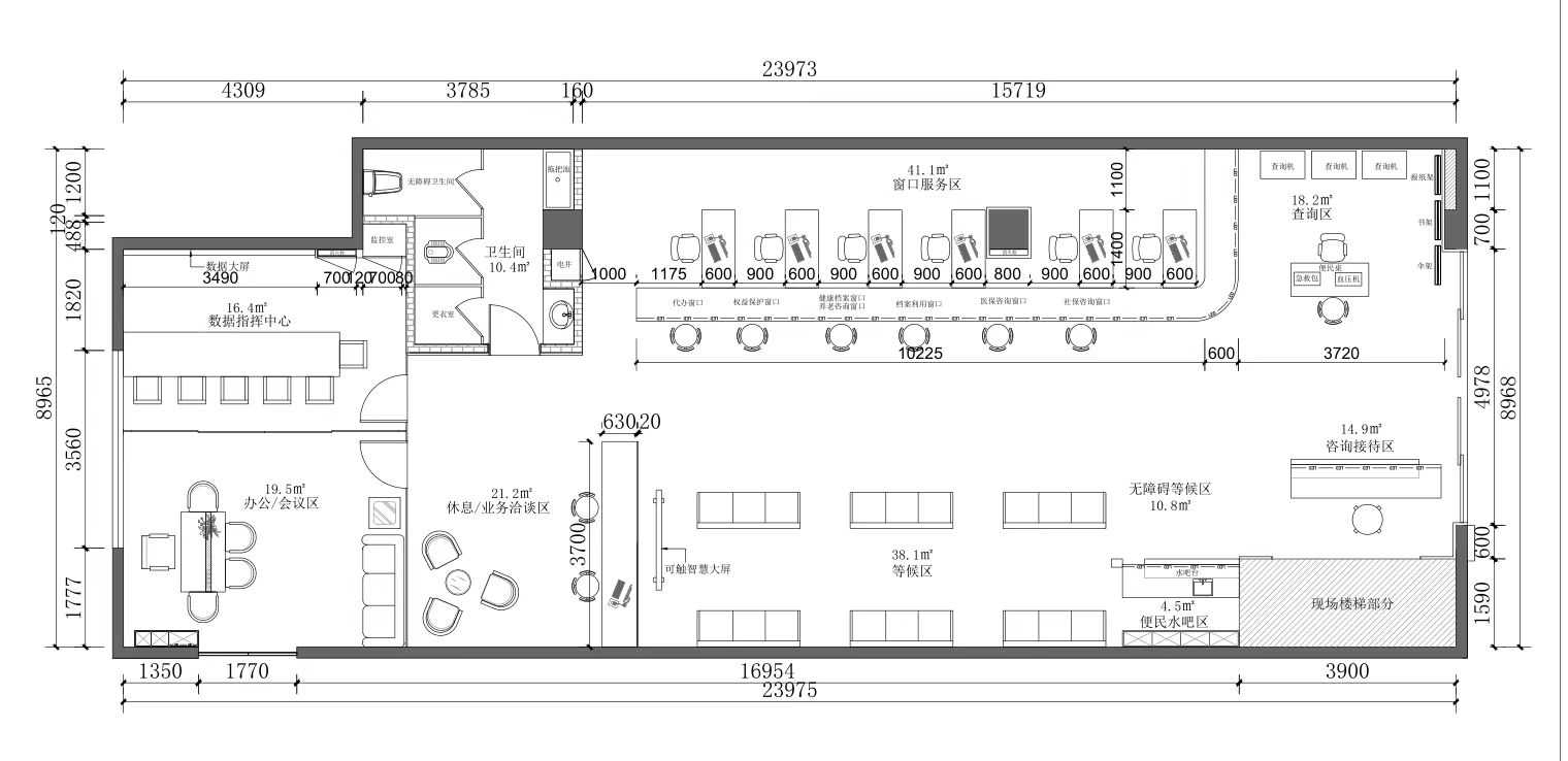 3、項(xiàng)目概況:西安建工職工服務(wù)中心有限責(zé)任公司擬將建工路中坤廣場(chǎng)A區(qū)6號(hào)樓一樓西安市國有企業(yè)退休人員服務(wù)大廳內(nèi)部局部改造,服務(wù)大廳面積為270㎡,包括服務(wù)前臺(tái)、洽談區(qū)、數(shù)據(jù)中心等?,F(xiàn)擬在保障服務(wù)大廳現(xiàn)有基本窗口功能分區(qū)的基礎(chǔ)上,劃設(shè)出約90㎡-120㎡作為后期幸福之路大藥房搬遷至服務(wù)大廳日常經(jīng)營(yíng)區(qū)域。本次詢價(jià)為西安市國有企業(yè)退休人員服務(wù)大廳局部改造。