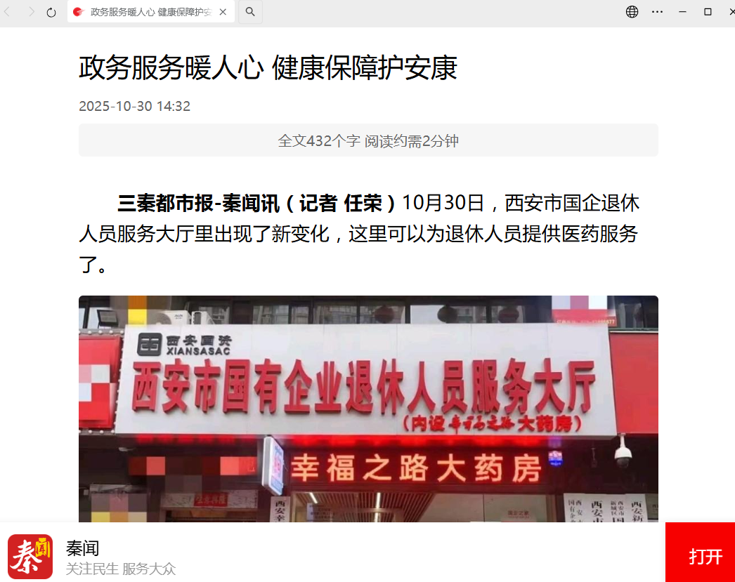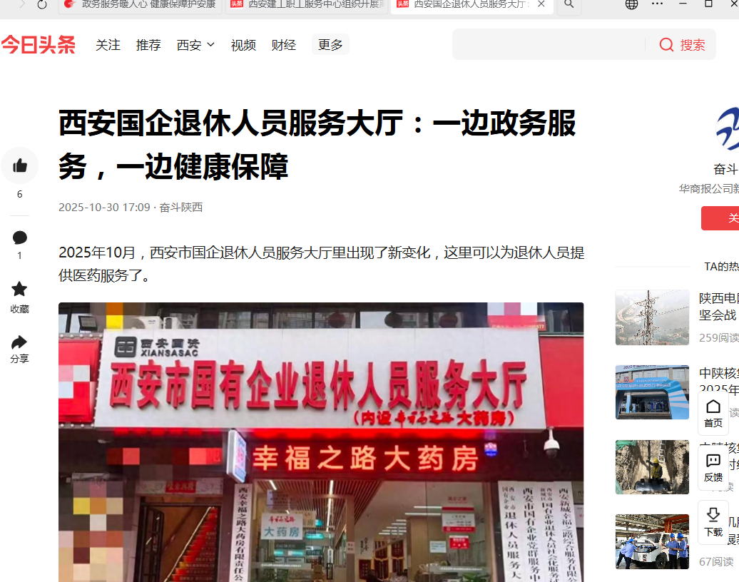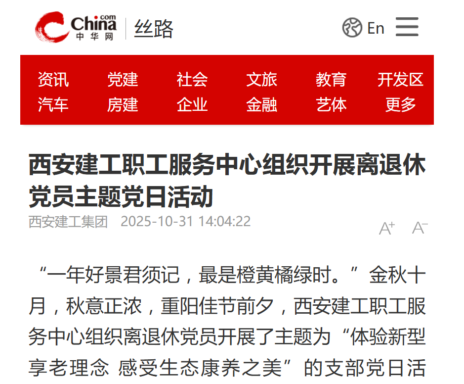 截止10月31日,人民日報中國城市網(wǎng)、中華網(wǎng)陜西、中國新聞網(wǎng)陜西、奮斗陜西、三秦都市報秦聞網(wǎng)、西安發(fā)布等社會媒體對西安建工職工服務(wù)中心的兩條新聞相繼進行了報道,充分彰顯了公共媒體的社會責(zé)任,同時也體現(xiàn)了我中心所承擔(dān)的服務(wù)老年群體以及國企退休人員社會化管理工作一直是社會關(guān)注的焦點。中國式現(xiàn)代化,民生為大。關(guān)注老年群體,是一個社會健康文明的標(biāo)志。以下是社會媒體報道。